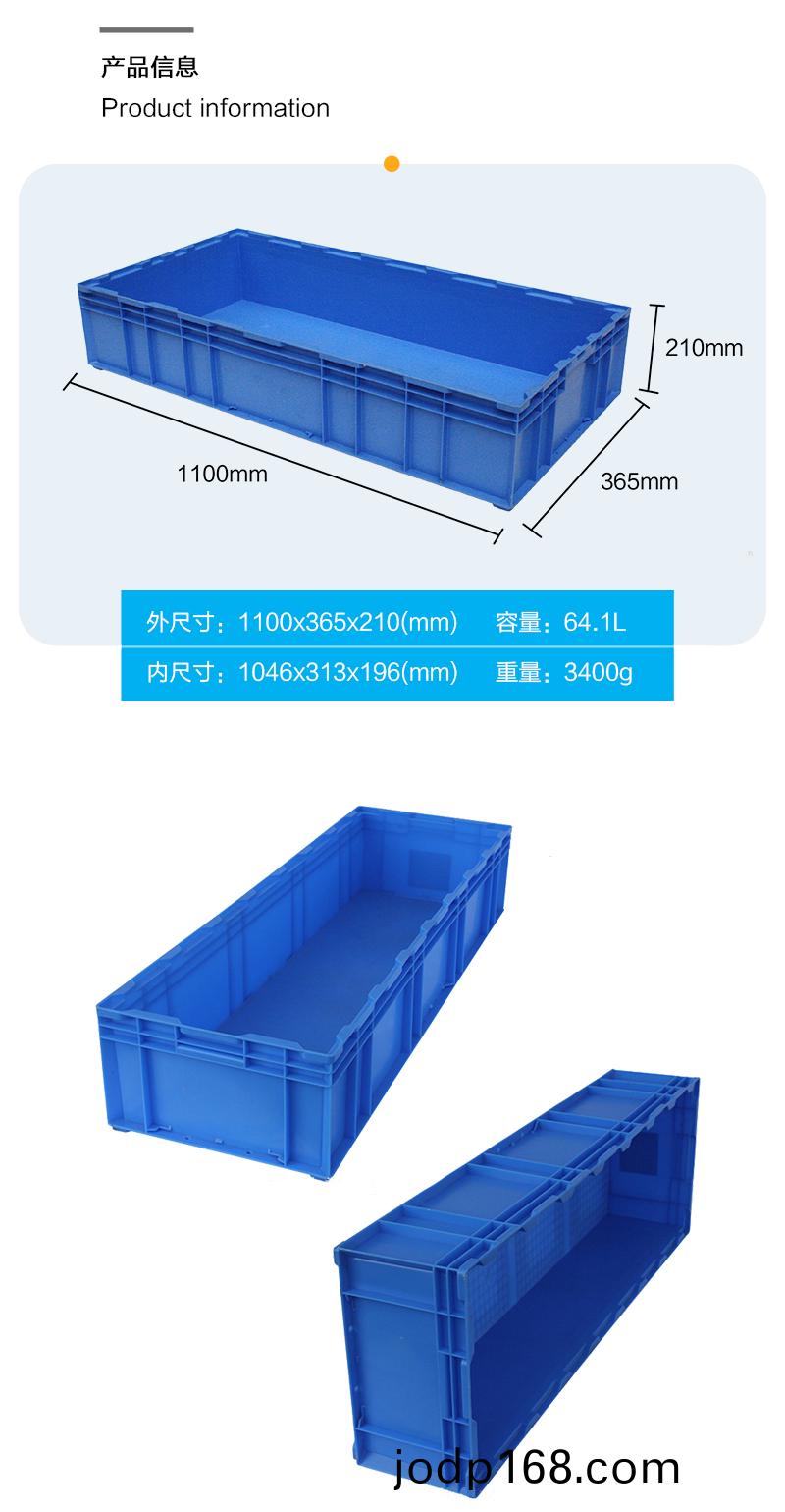 外尺寸:1100*365*210mm 內尺寸:1046*303*196mm 材質:PP 重量:3400g