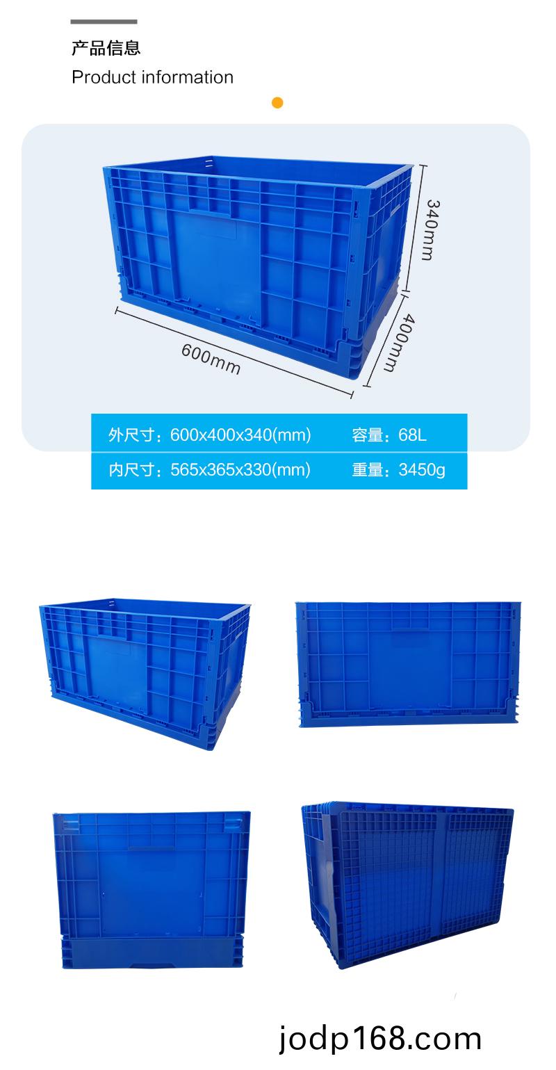 外尺寸:600*400*340mm 內尺寸:565*365*330mm 材質:PP 重(zhong)量:3450g