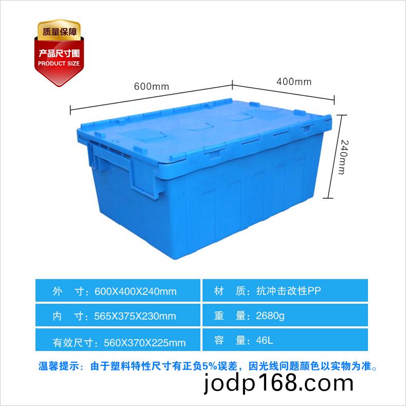 外尺寸:600×400×240mm 內尺寸:568×375×230mm 材質:PP 重量:2680g