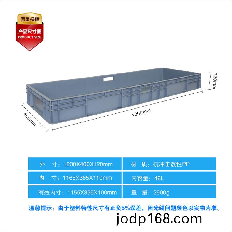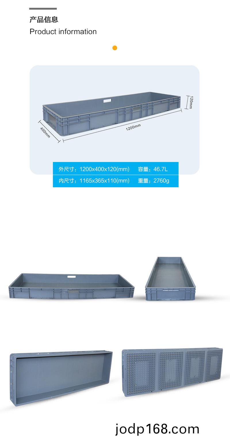 外尺寸:1200*400*120mm 內尺寸:1165*365*110mm 材質:PP 重量:2850g