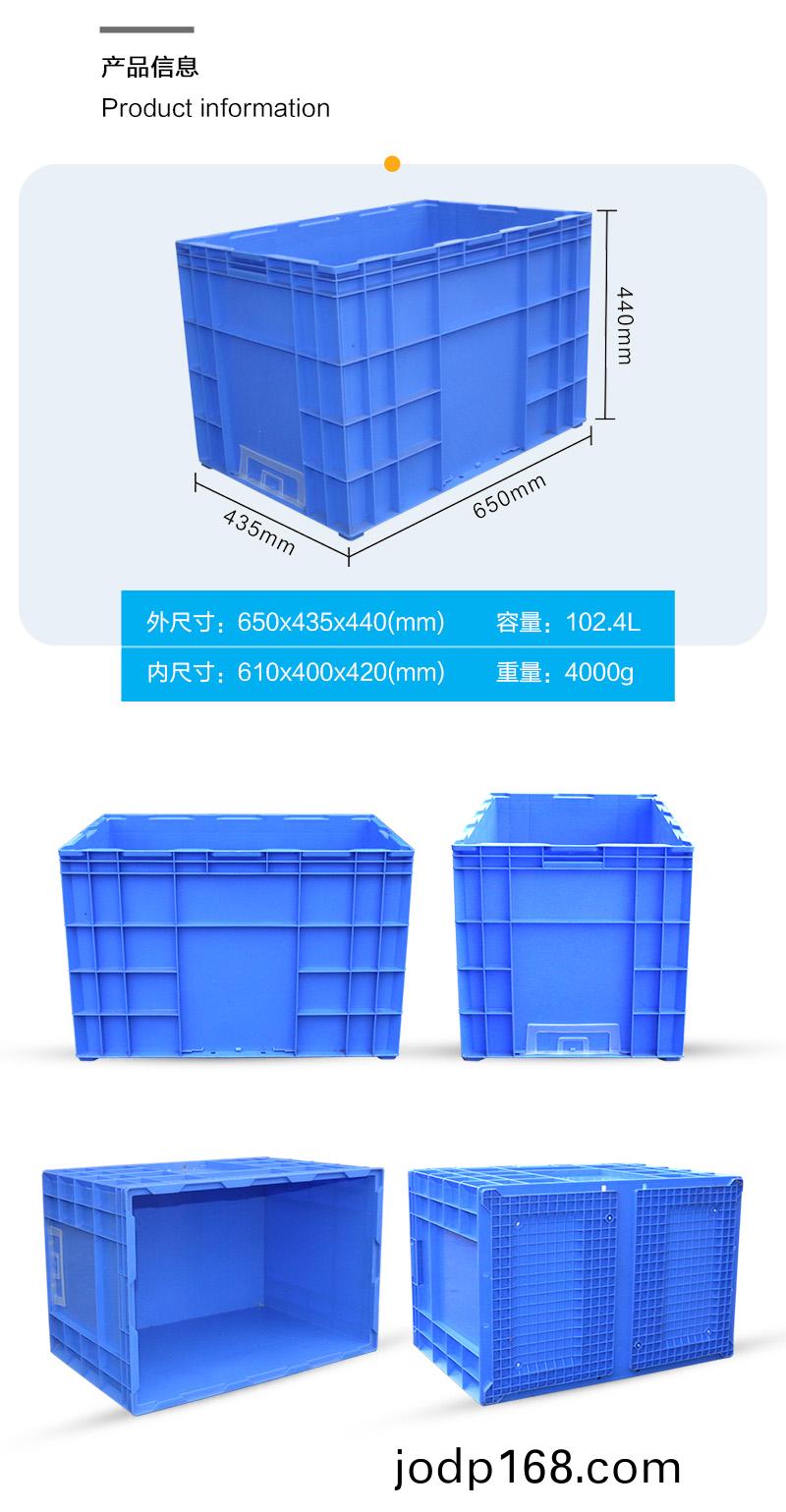 外尺寸:650*435*440mm 內尺寸(cun):610*400*420mm 材質:PP 重量:3400g