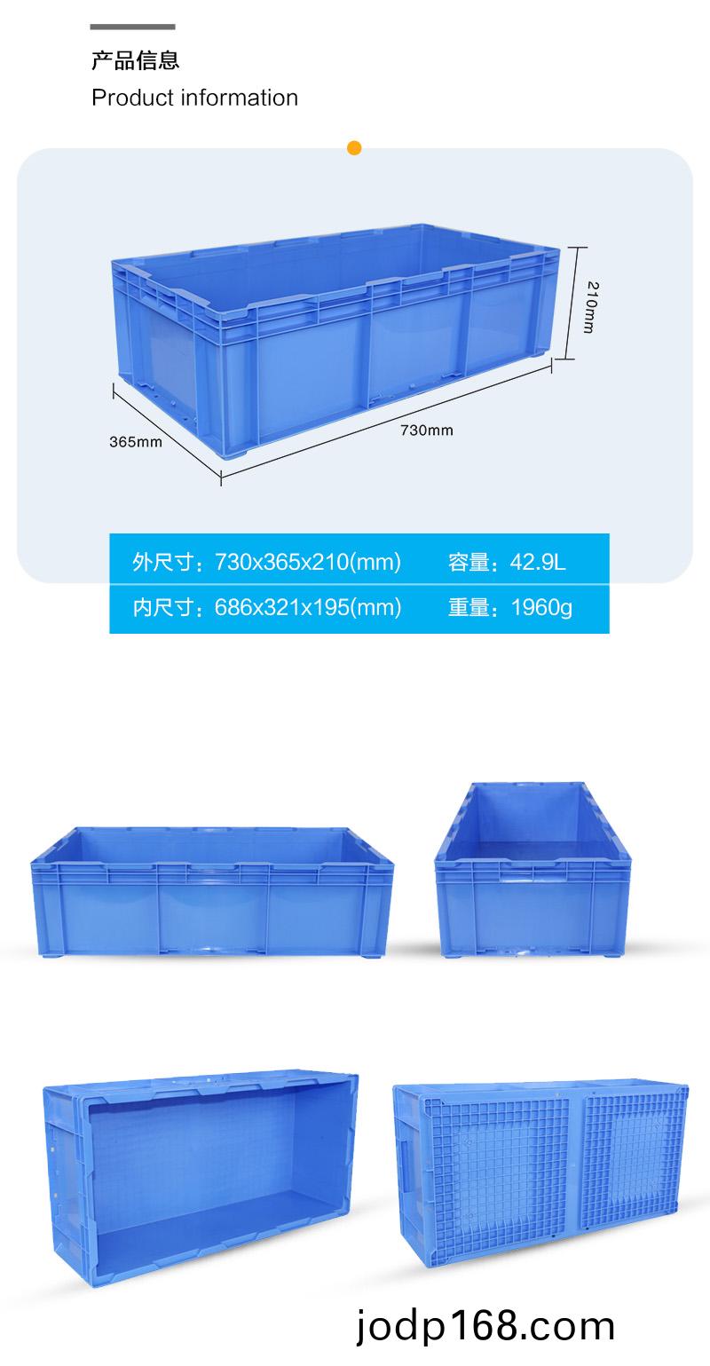 外尺寸:730*365*210mm 內尺寸:649*321*195mm 材質(zhi):PP 重量:1960g