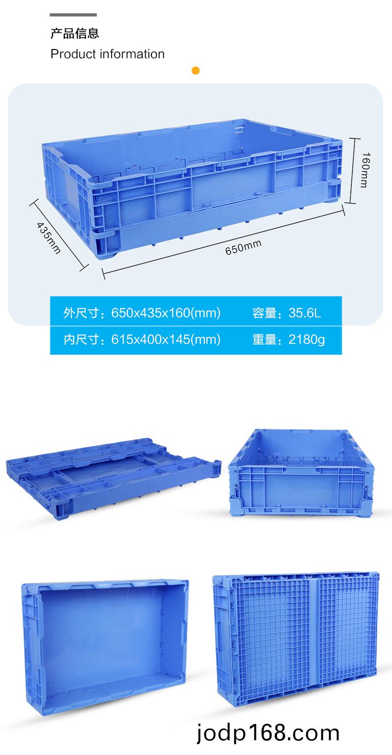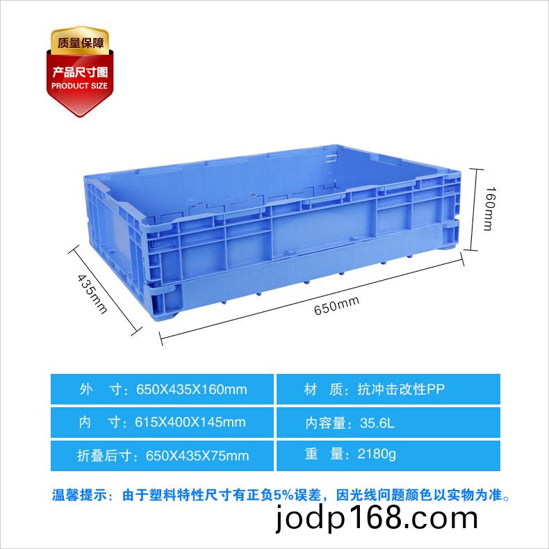 外(wai)尺寸:650*435*160mm 內(nei)尺寸(cun):615*400*145mm 材質:抗衝擊改性PP 重量:2180g