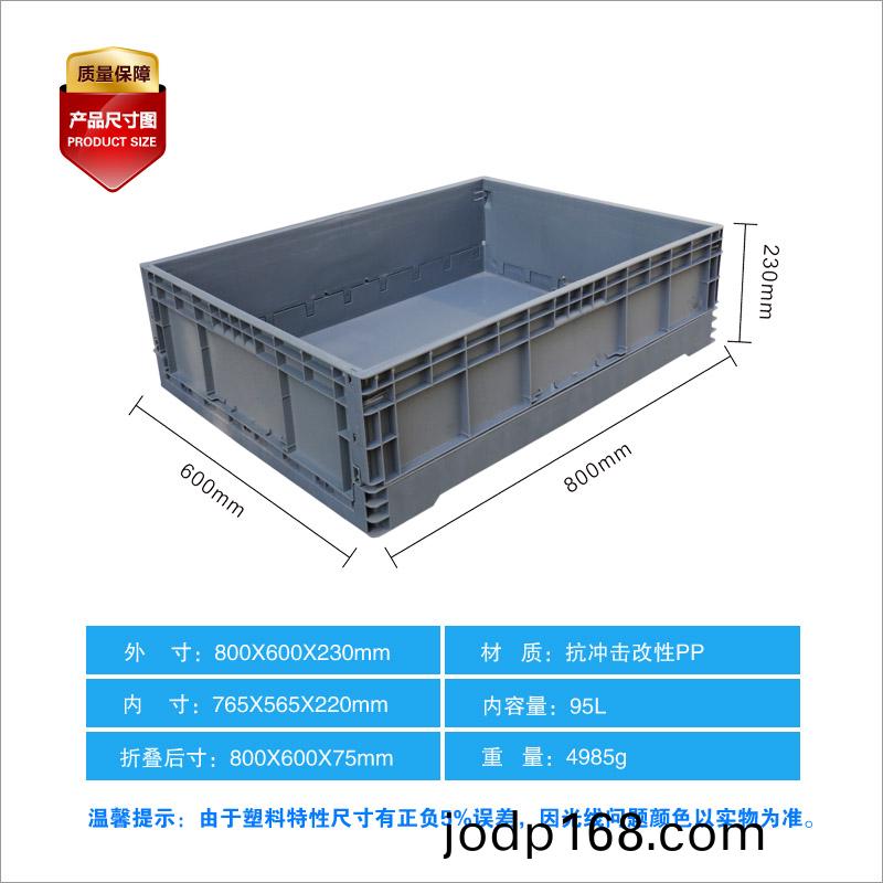 外尺寸:800×600×230mm 內尺寸:765×565×220mm 材質:PP 重量:4985g