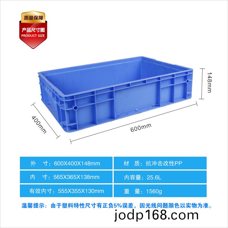 外尺寸(cun):600×400×147mm 內尺寸:550×360×130mm 材質:抗衝擊改性PP 重量:1560g