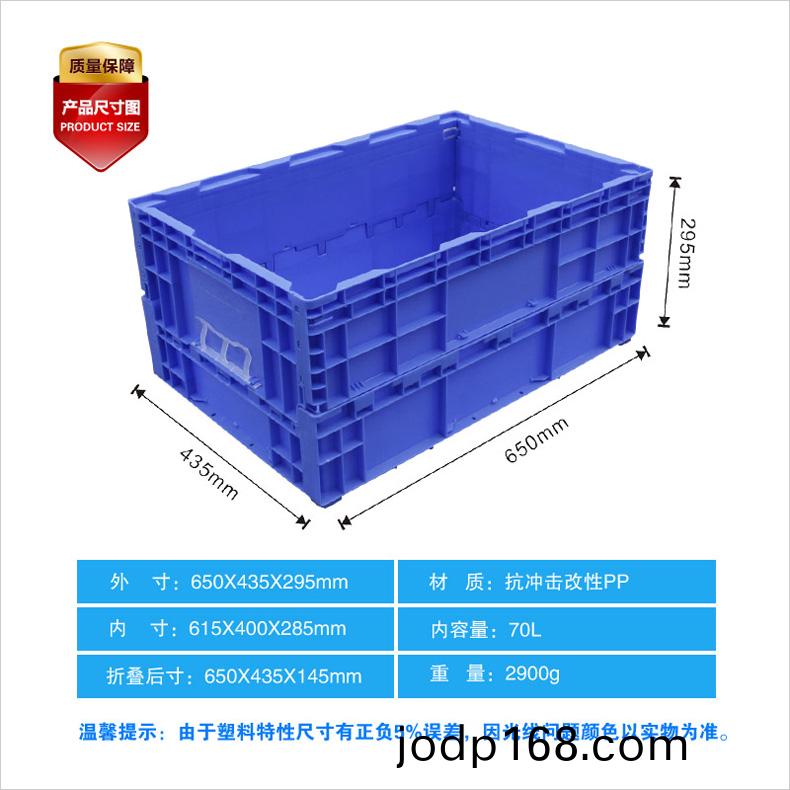 外尺寸:650*435*295mm 內尺寸(cun):610*400*285mm 材質:抗衝擊改性PP 重量:2900g