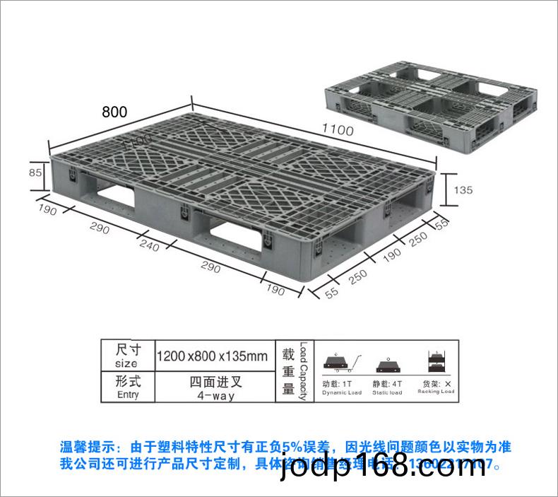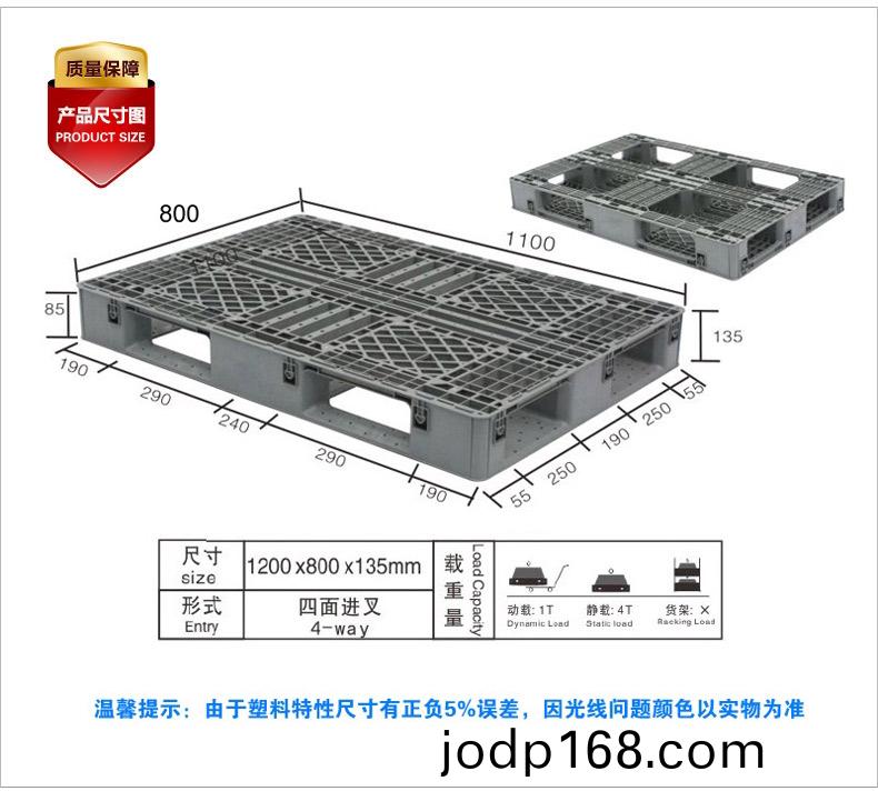 外尺寸:1200*800*135mm 內尺寸:- 材質:抗衝擊改性PP 重量(liang):10050g