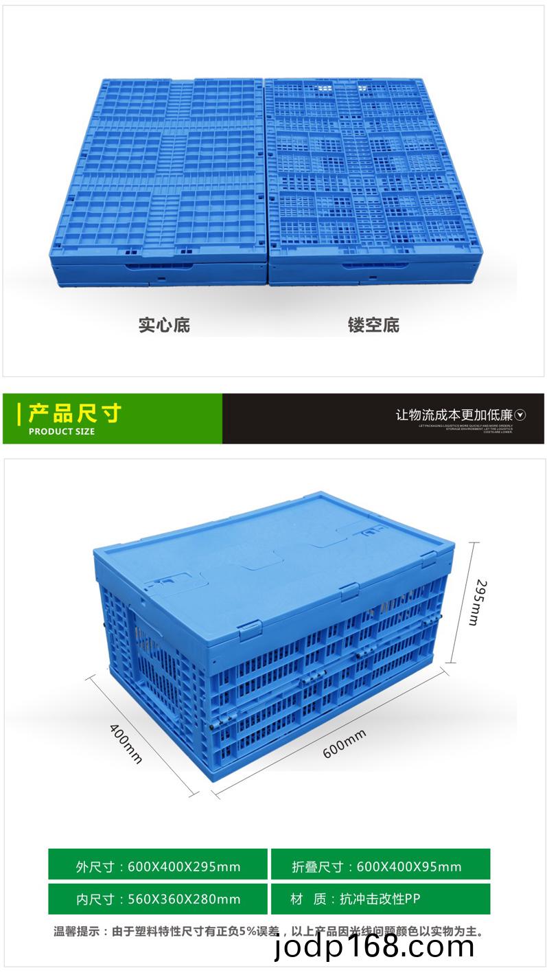 外尺寸:600*400*295mm 內尺寸:600*400*295mm 材質:抗衝擊改性PP 重量(liang):2.84kg