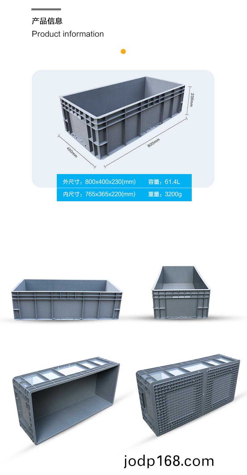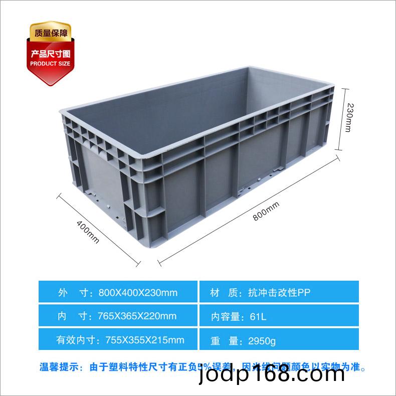 外尺寸(cun):800X400X230mm 內尺寸:765X365X220mm 材質:抗衝擊改性PP 重量(liang):2.9kg