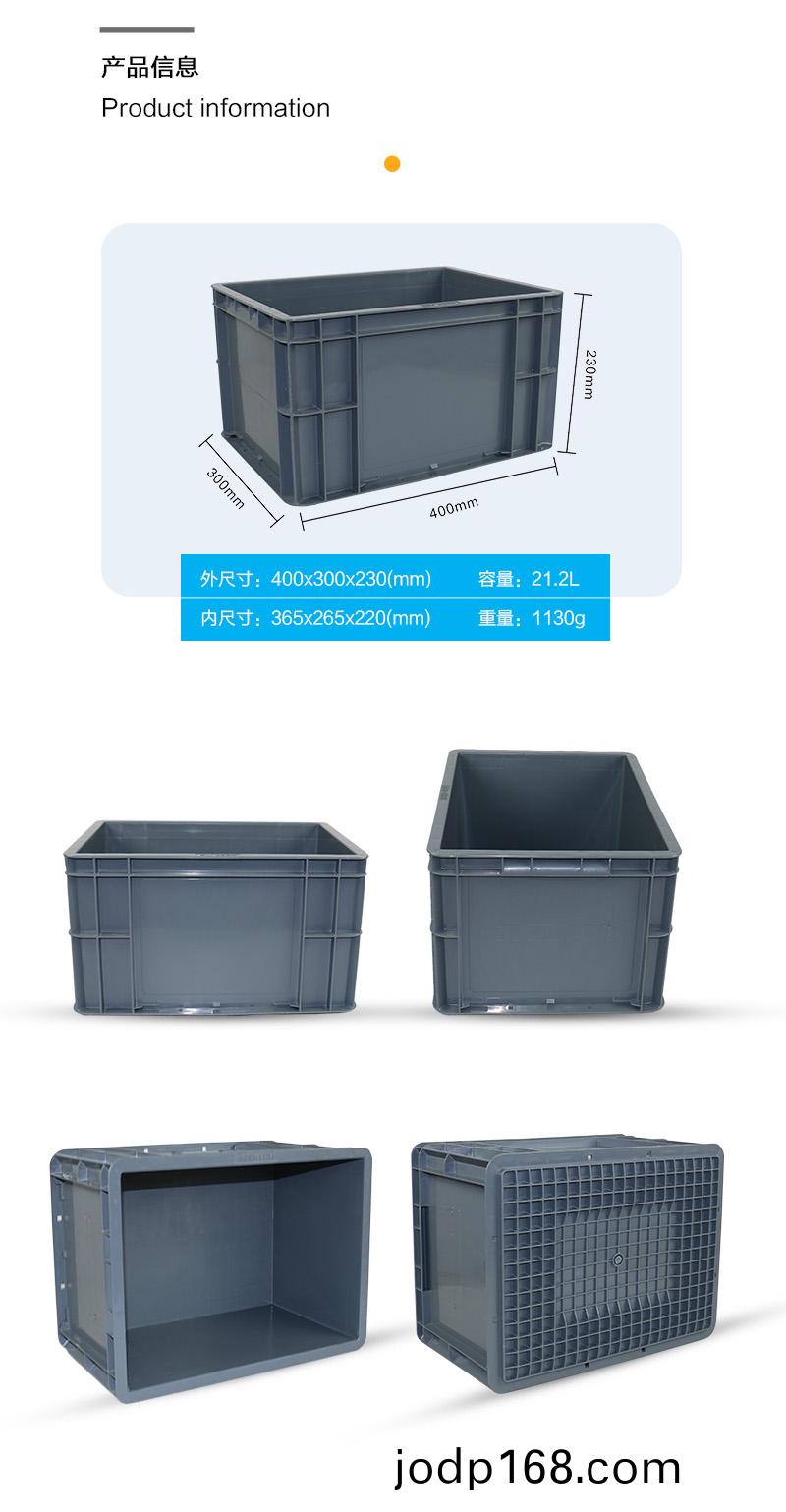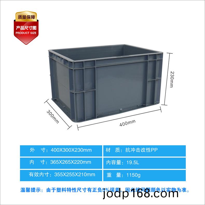 外尺寸:400X300X230mm 內尺(chi)寸:465X265X220mm 材質:抗衝(chong)擊改(gai)性PP 重(zhong)量:1.1kg